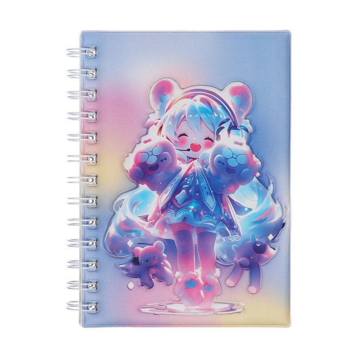 Записная книжка подарочная на гребне 80л,линия, цветной блок,облож.ПВХ 3D Аниме(17,7х13,7см) 10539