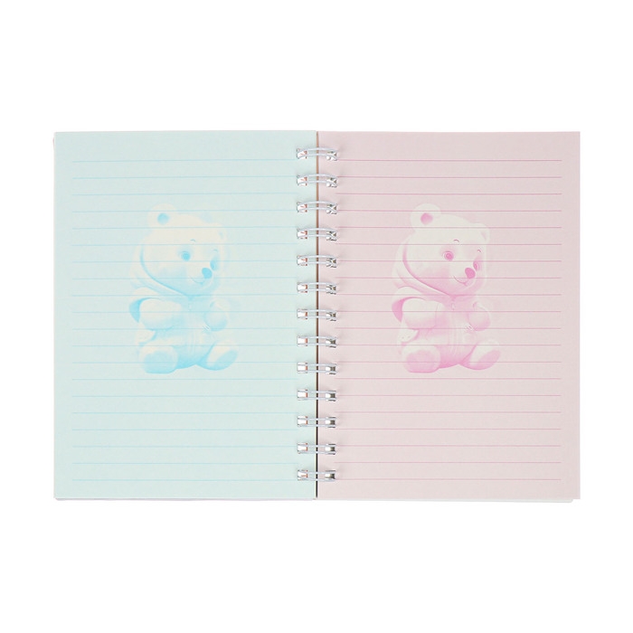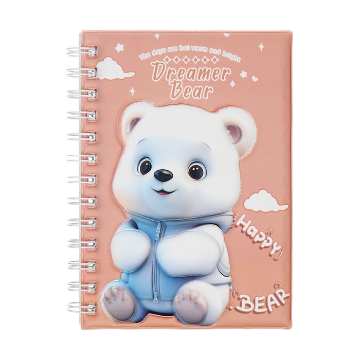 Записная книжка подарочная на гребне 80л,линия, цветной блок,обложка ПВХ 3D Мишка(17,6х13,5см) 105