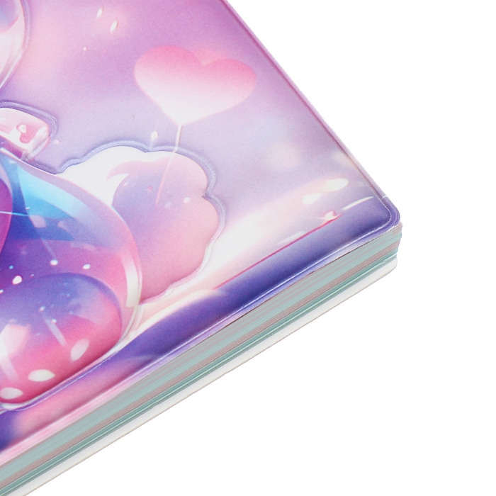 Записная книжка подарочная на гребне 80л,линия, цветной блок,обложка ПВХ 3D Зайка(17,6х13,5см) 105