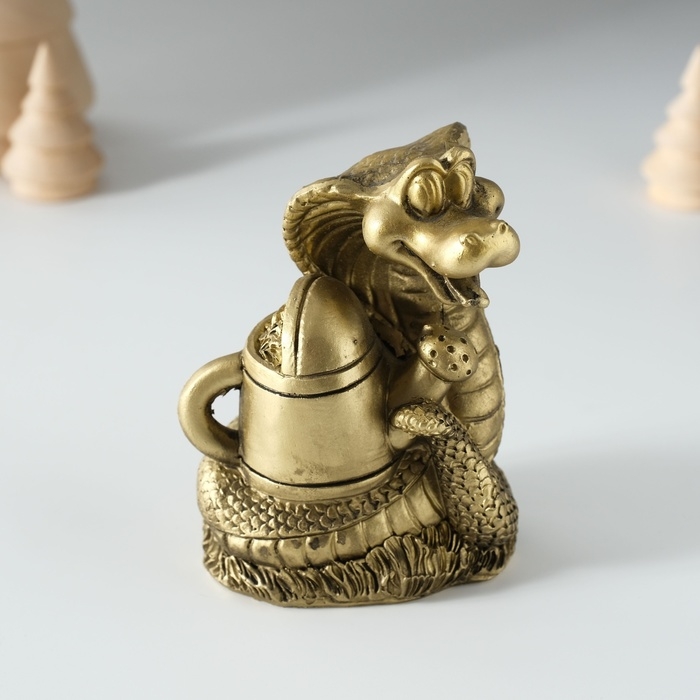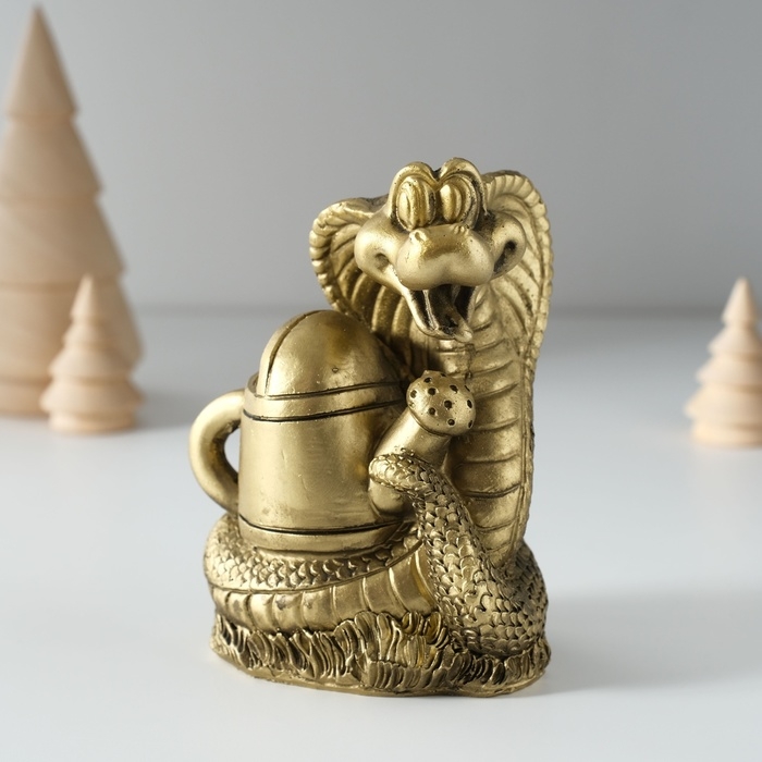 Копилка полистоун "Змейка с лейкой" золото 7х6х10 см