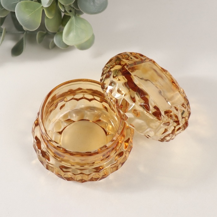 Шкатулка стекло "Лёд" прозрачная карамель 7х7х5 см