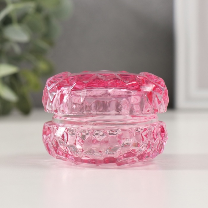 Шкатулка стекло "Лёд" прозрачная розовая 7х7х5 см