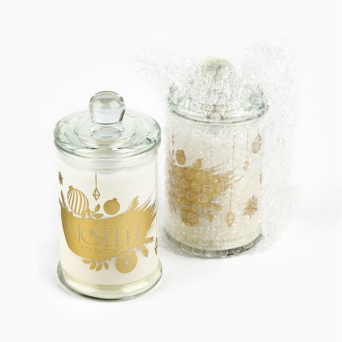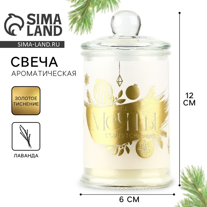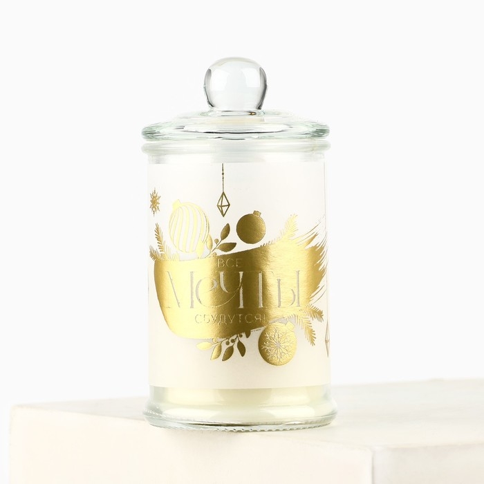 Свеча-баночка интерьерная новогодняя «Мечты сбудутся» на Новый год, аромат лаванда 11,5 х 5,8 см