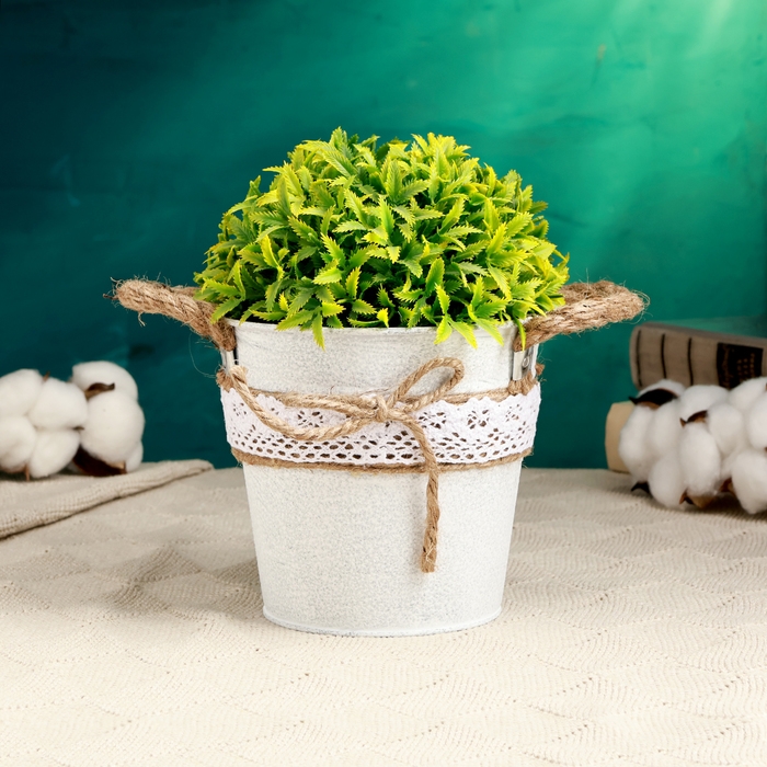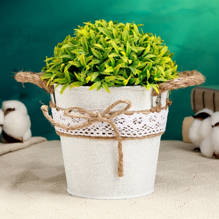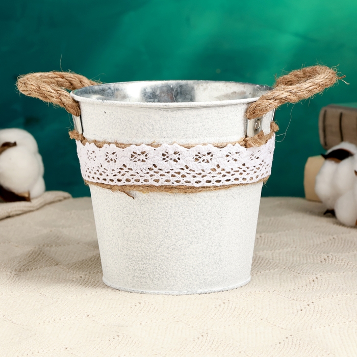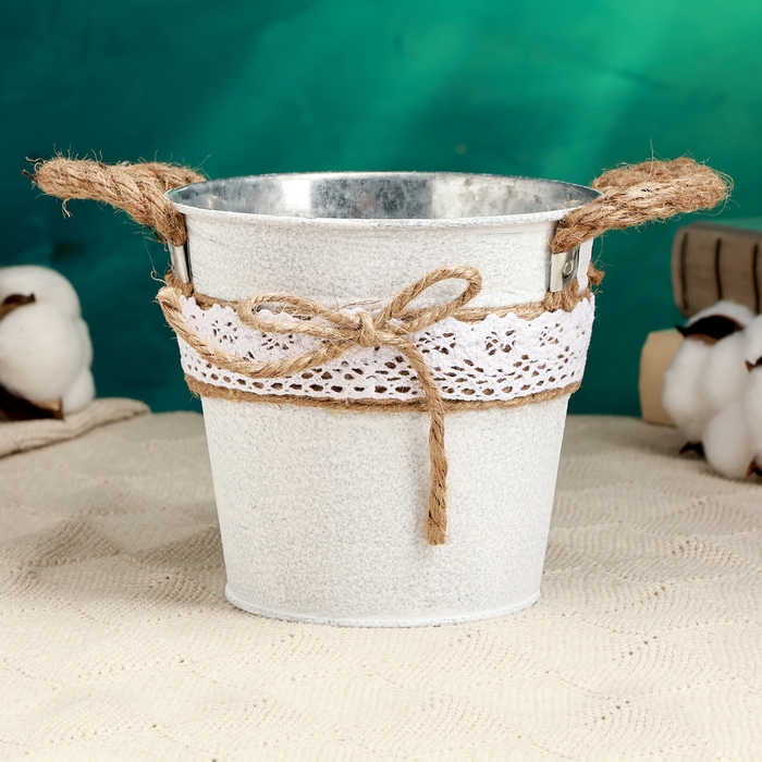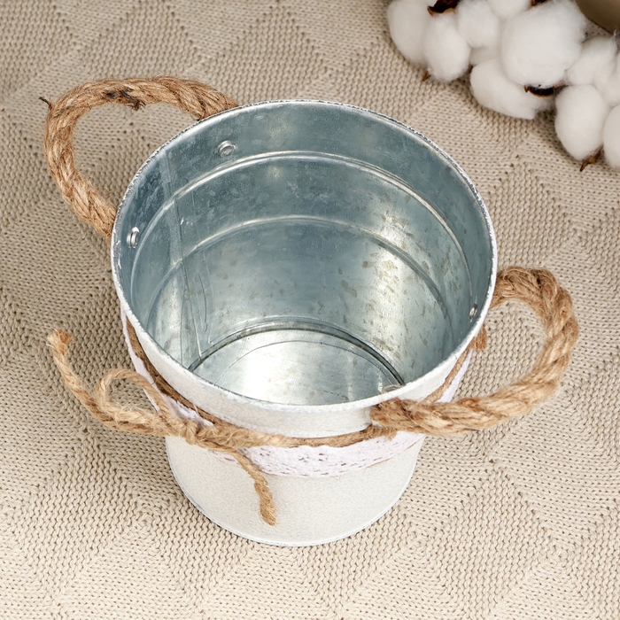 Кашпо "Ведерко Линдберг" белое с ручками, 13х13х12см