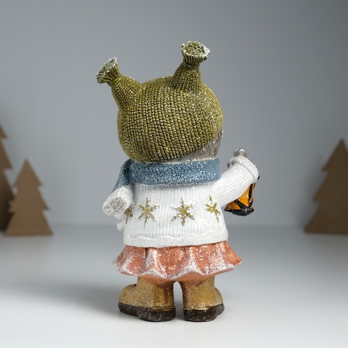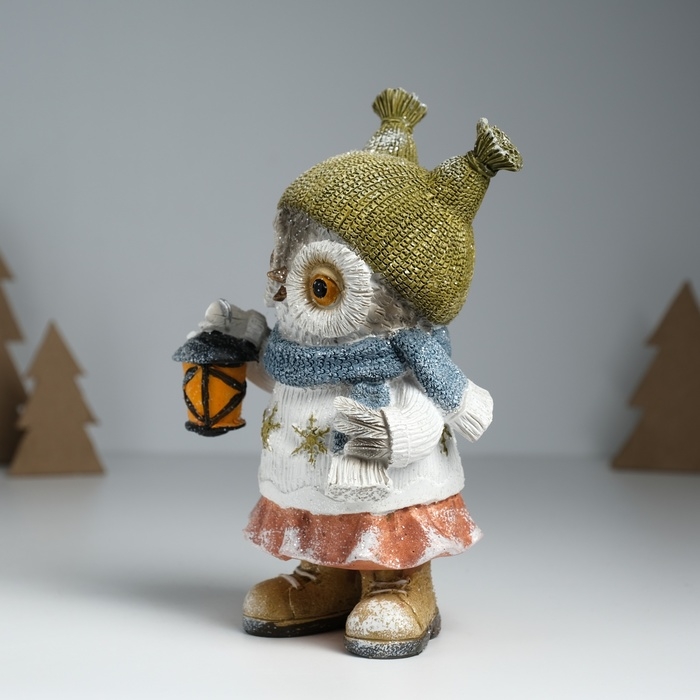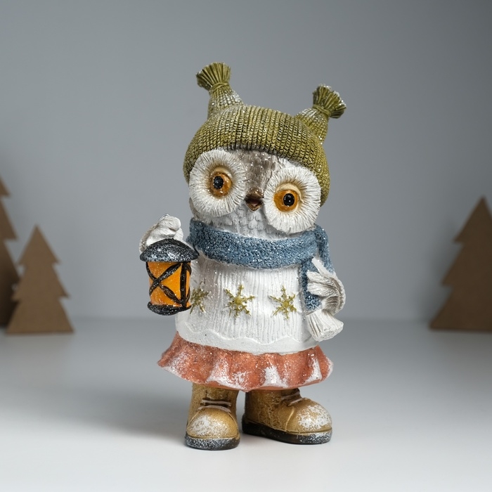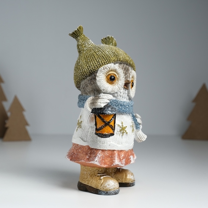 Сувенир полистоун "Совушка в свитере со снежинками, с фонариком" 11,6х8х19 см