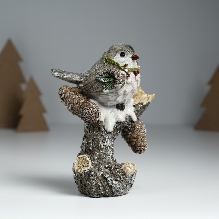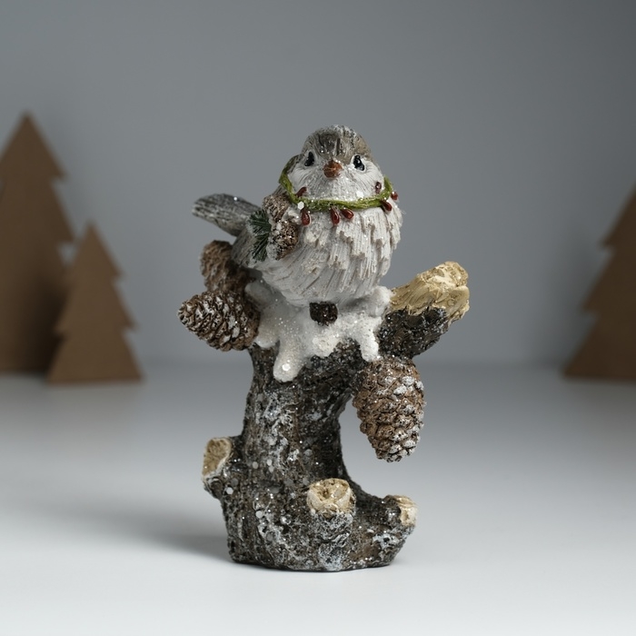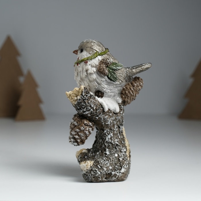 Сувенир полистоун "Воробышек в венке с ягодками и шишками на дереве" 10,5х7х13,5 см