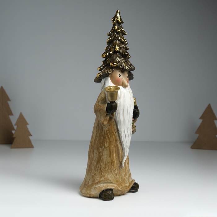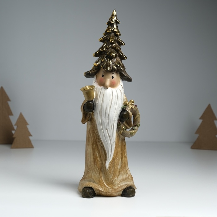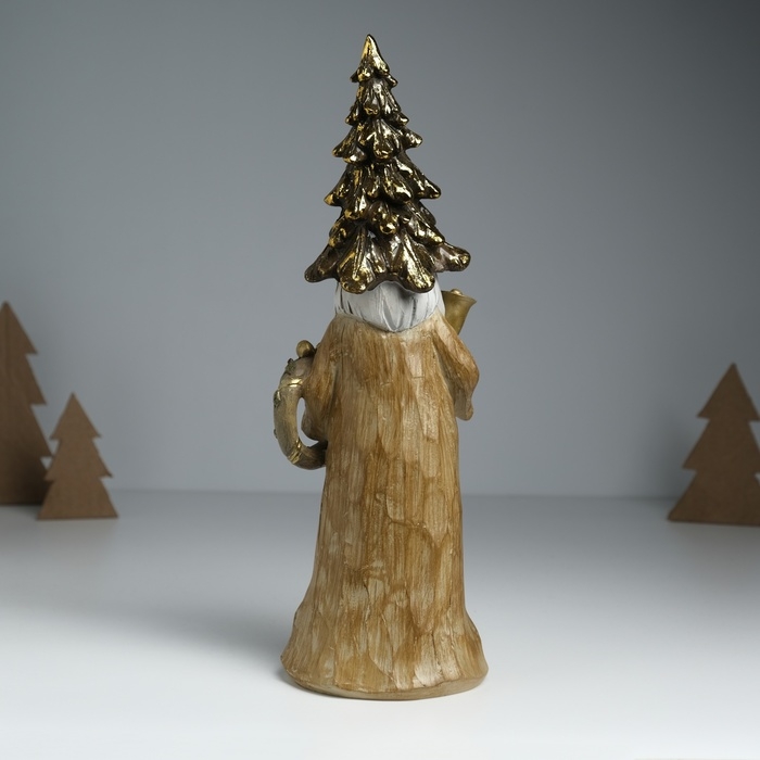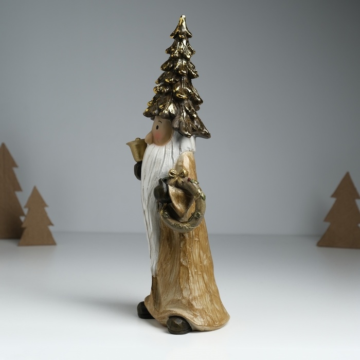 Сувенир полистоун "Дед Мороз в золотом наряде, колпаке-ёлке, с венком" 10х8х29 см