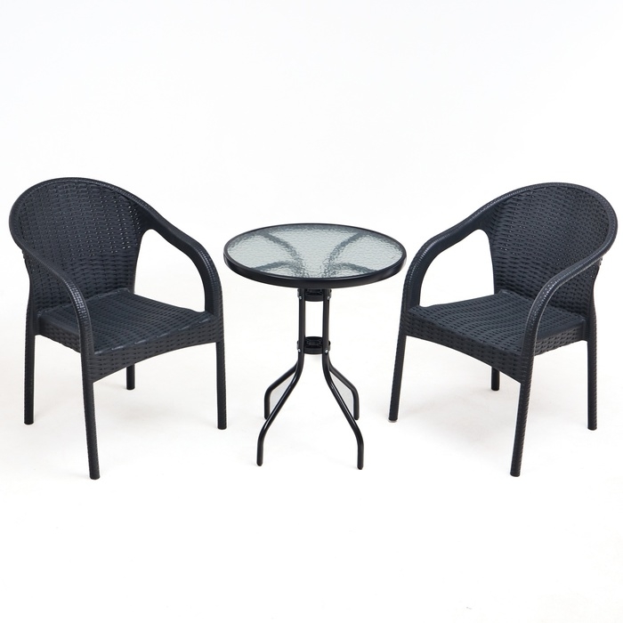 Набор садовой мебели: стол + 2 стула, пластик, антрацит, максимальная нагрузка 120 кг