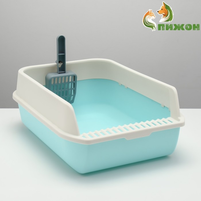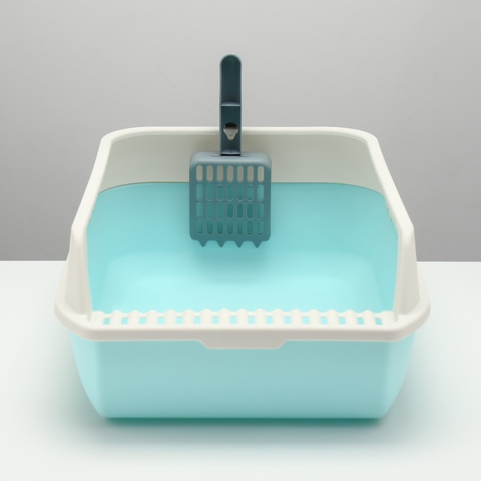 Туалет с высоким бортом с совком и фильтром, 50 х 36 х 21 см, голубой