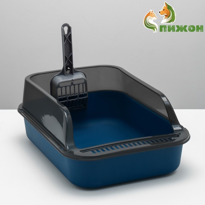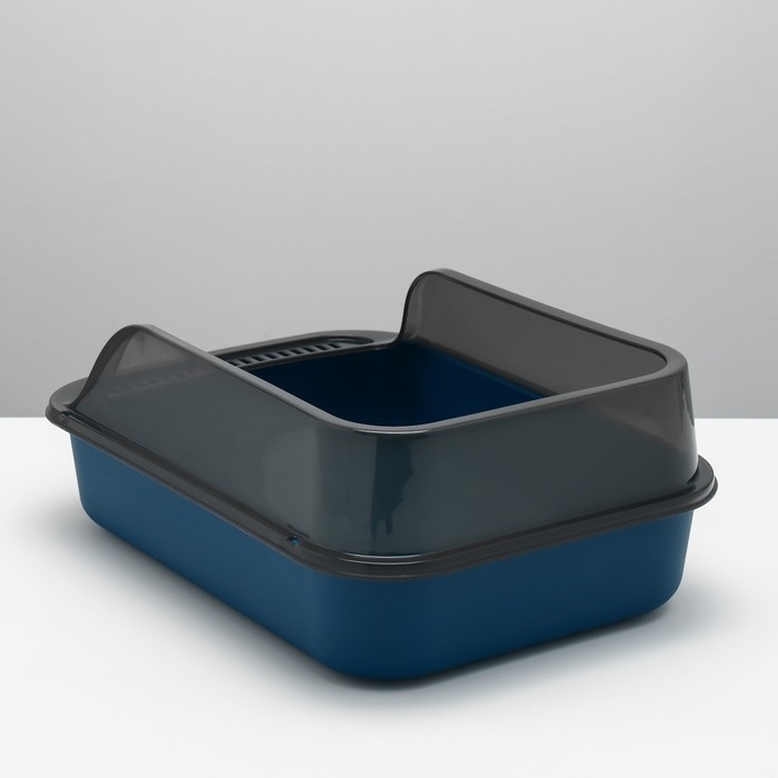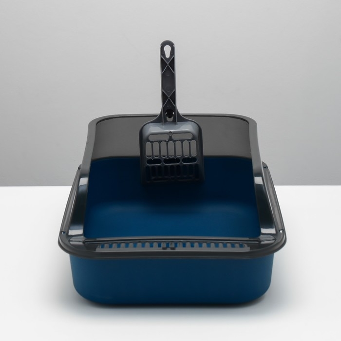 Туалет с прозрачными бортами с совком и фильтром, 40 х 28 х 16 см, синий