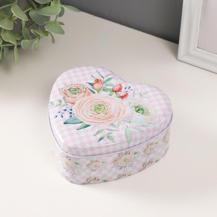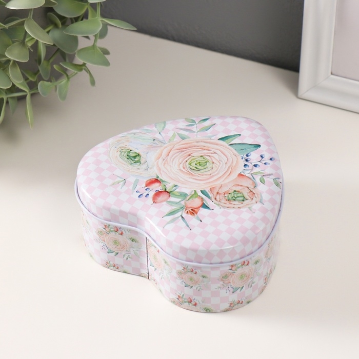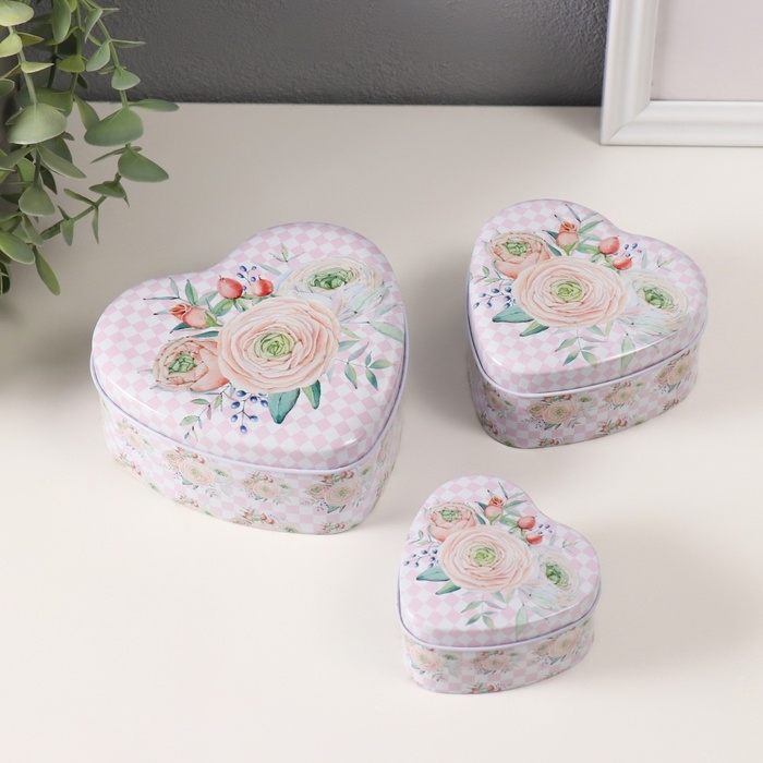 Шкатулка металл сердце "Нежность цветов" набор 3 шт 10,5х12,6х5 см