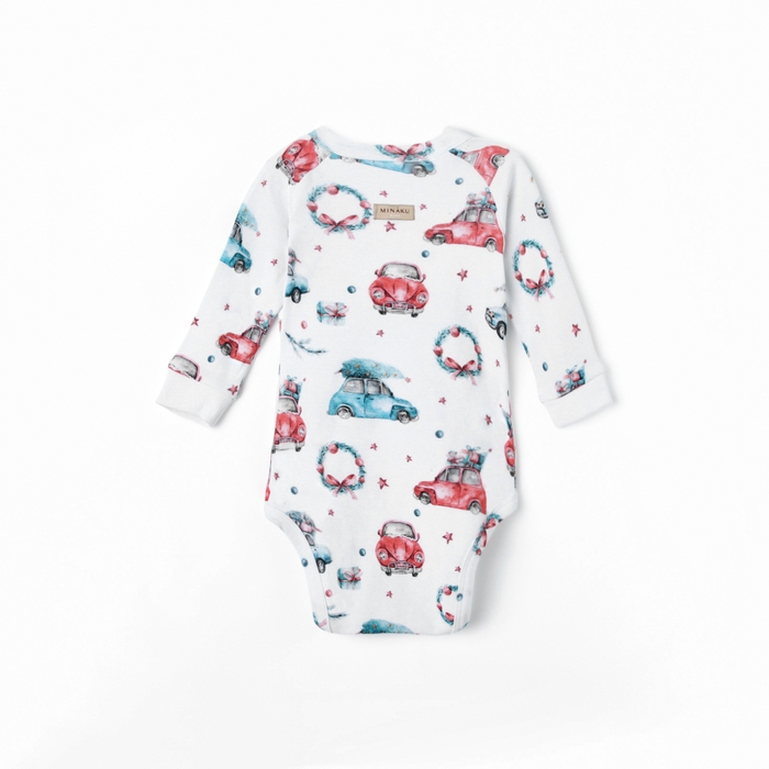 Боди детское с длинным рукавом MINAKU "New Year's cars", цвет белый, рост 62-68 см