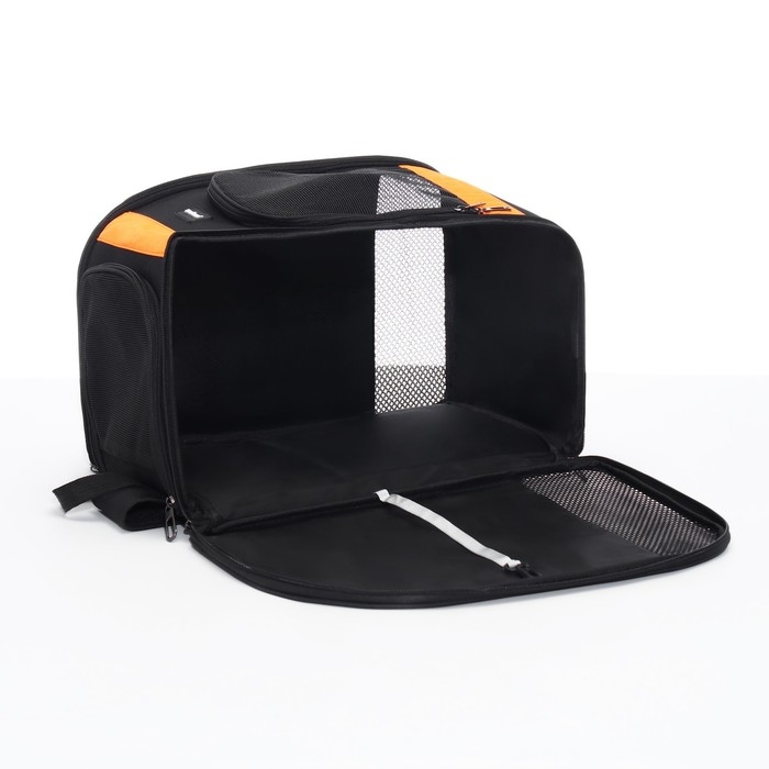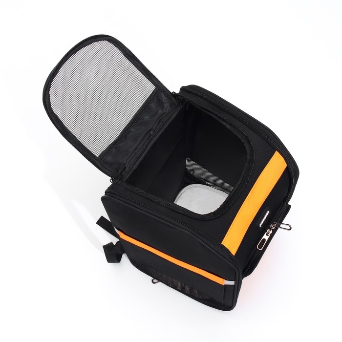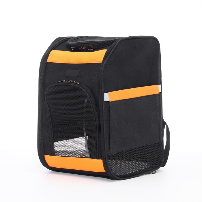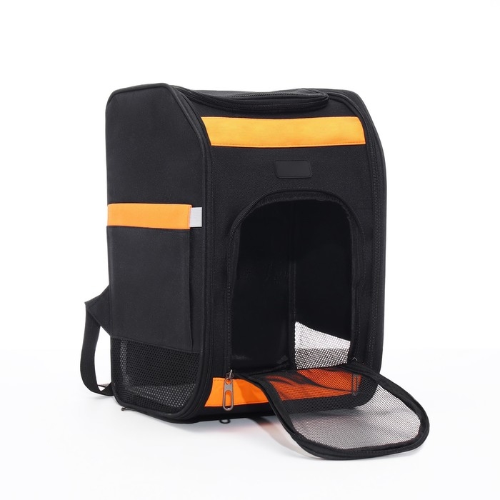 Рюкзак для переноски кошек и собак, БРЕЗЕНТ, 30*27*40 см, чёрно-оранжевый