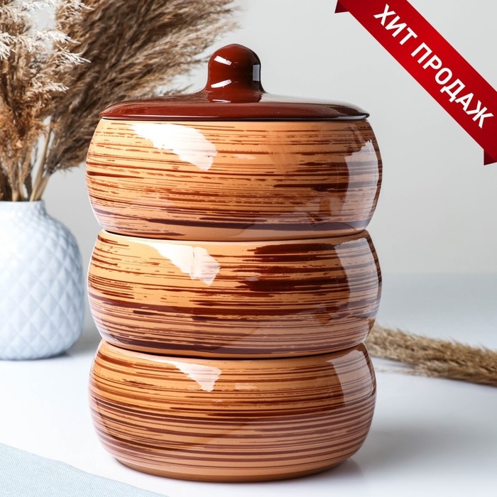 Используйте набор для хранения холодца, салатов и закусок. Изделие предотвращает заветривание и сохраняет привлекательный внешний вид блюда. Такая посуда подходит для готовки в микроволновой печи, духовом шкафу, русской печи или на гриле, так как сделана из специальной керамики.