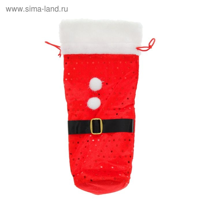 Чехол на бутылку «Дед Мороз колпак с рисунком» на завязках