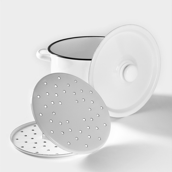 Мантоварка эмалированная «Позница», 7,5 л, 2 вставки, цвет белый