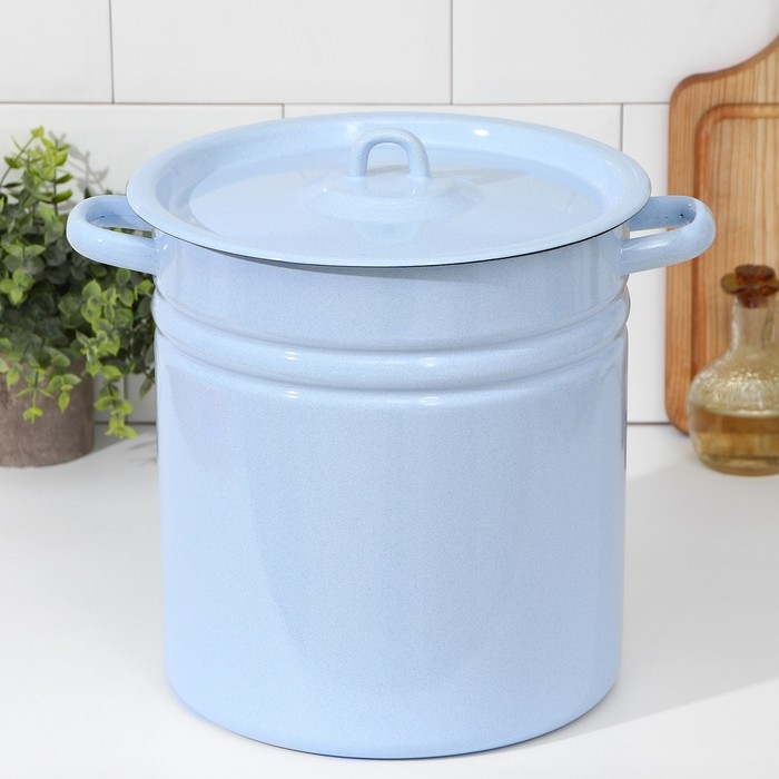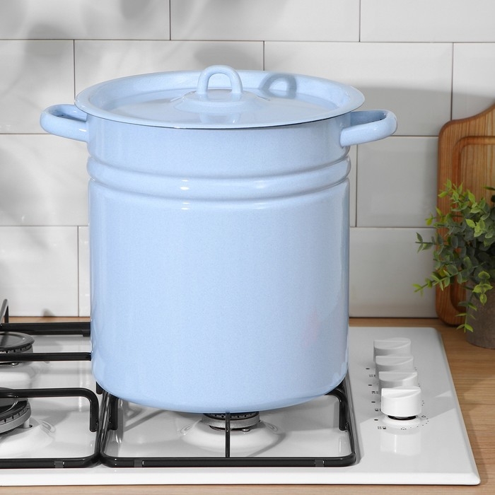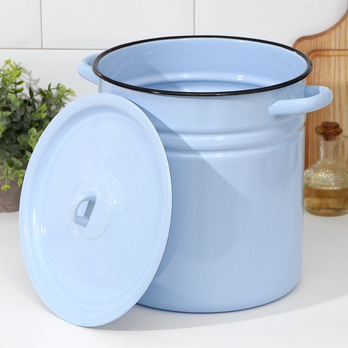 Кастрюля эмалированная, 12 л, металлическая крышка, индукция, цвет серо-голубой