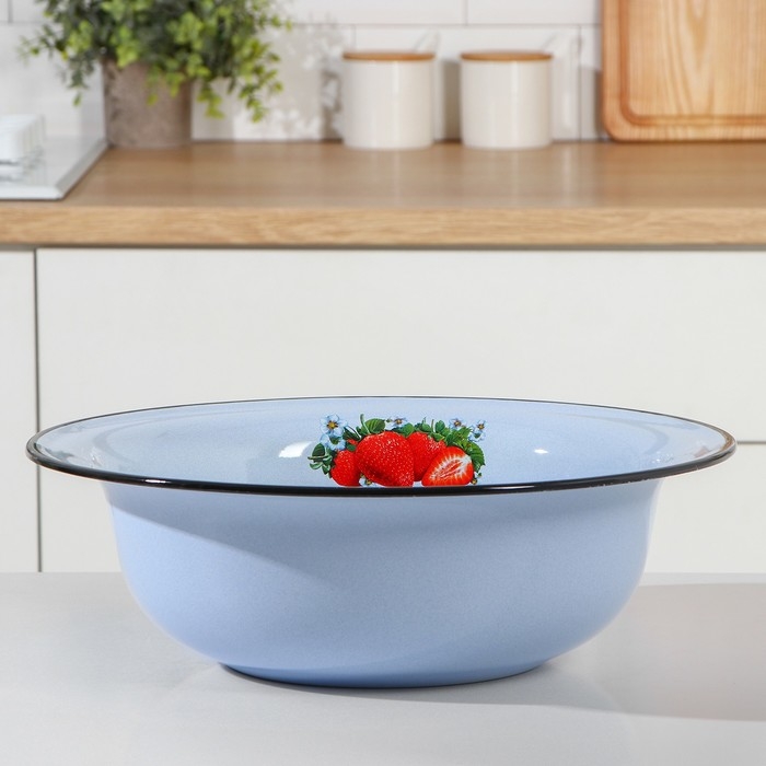 Таз эмалированный «Клубника садовая», 7 л, 38,5×12 см, индукция, цвет серо-голубой