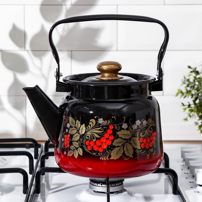 Чайник эмалированный «Рябинушка», 3,5 л, цвет чёрный