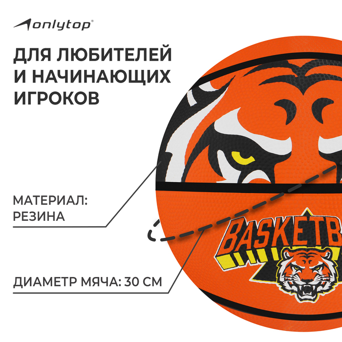 Баскетбольный мяч ONLYTOP «Тигр», клееный, 8 панелей, р. 7, резина, резиновая камера