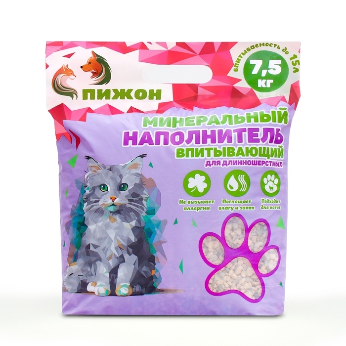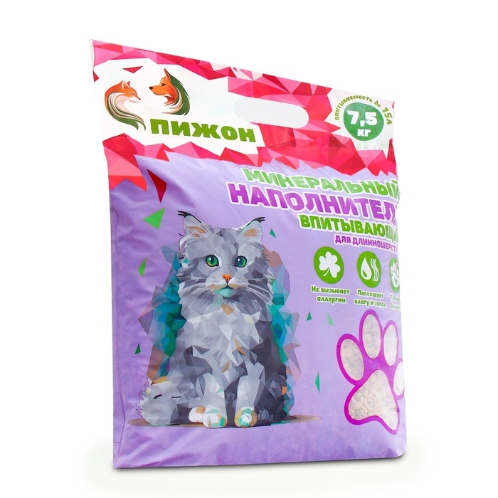 Наполнитель минеральный впитывающий "Пижон Premium", для длинношерстных кошек, 5 л