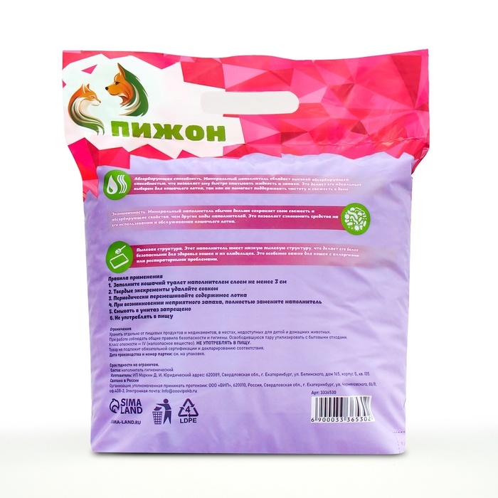 Благодаря своей способности удерживать запахи, минеральный впитывающий наполнитель помогает поддерживать свежесть в туалете вашего питомца. Это создает более комфортные условия как для животного, так и для вас.