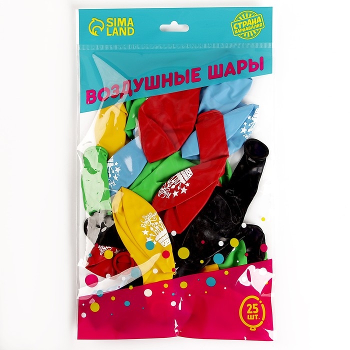 Воздушный шар латексный 12" «День рождения», праздн. тематика, пастель, 25 шт.