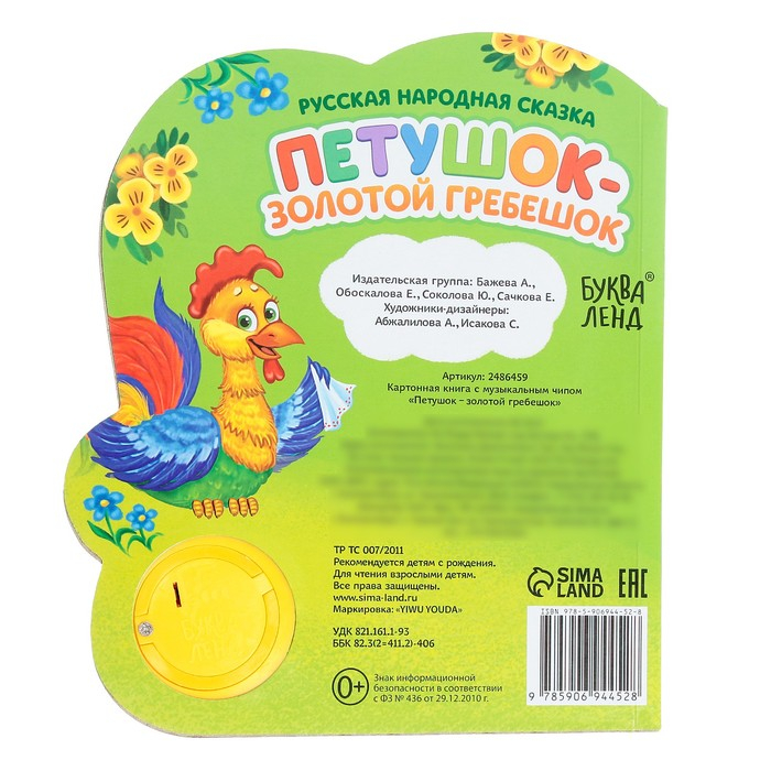 Музыкальная книга-сказка «Петушок- золотой гребешок», 10 стр.