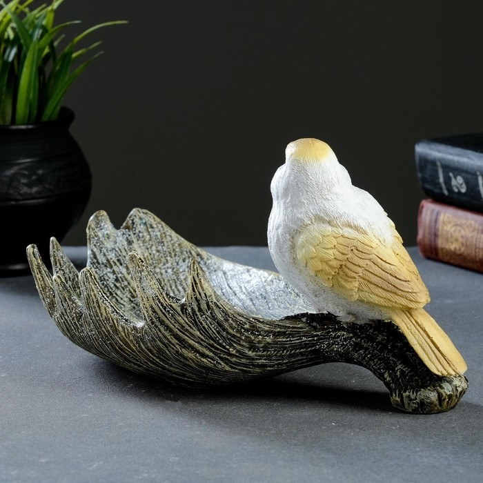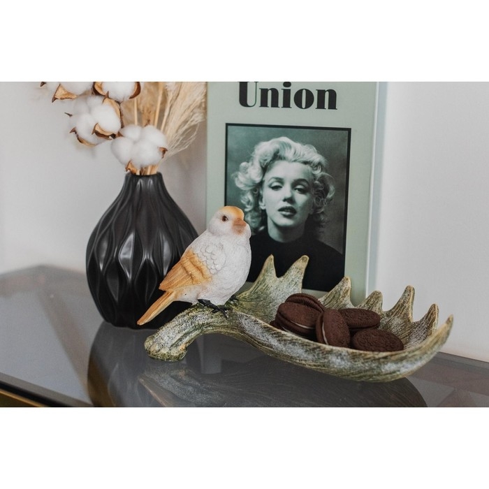 Конфетница "Лосиный рог с птичкой" акрил 28х15х14см
