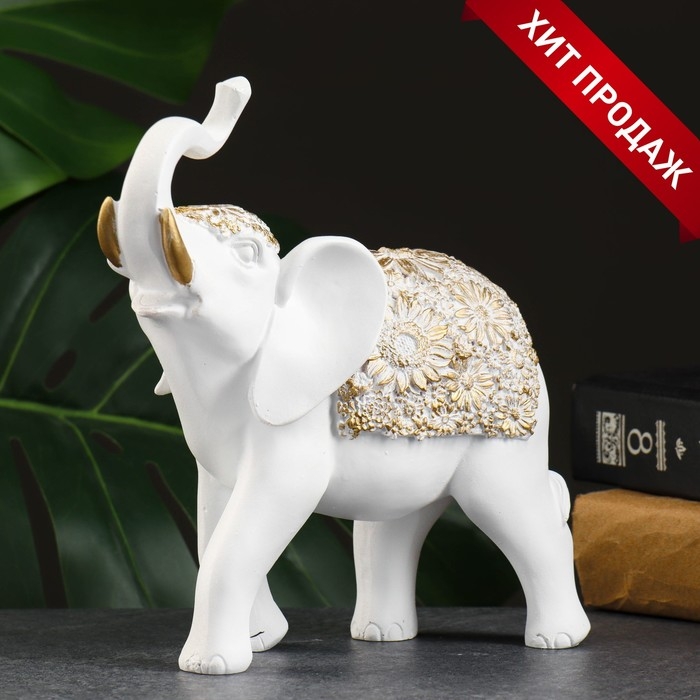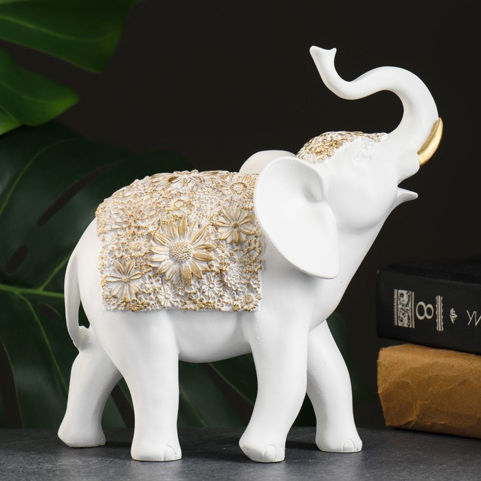 Фигура "Слон" белый/золото, 20х8х19см