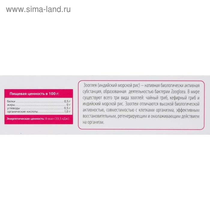 Зооглея (индийский морской рис) – нативная биологически активная субстанция, образованная деятельностью бактерии Zoogloae. В мире существует всего три вида зооглей: чайный гриб, кефирный гриб и индийский морской рис. Зооглеи отличаются высокой биологической активностью, совместимостью с клетками организма, эффективным восстановительным, регенерирующим и омолаживающим действием на организм.