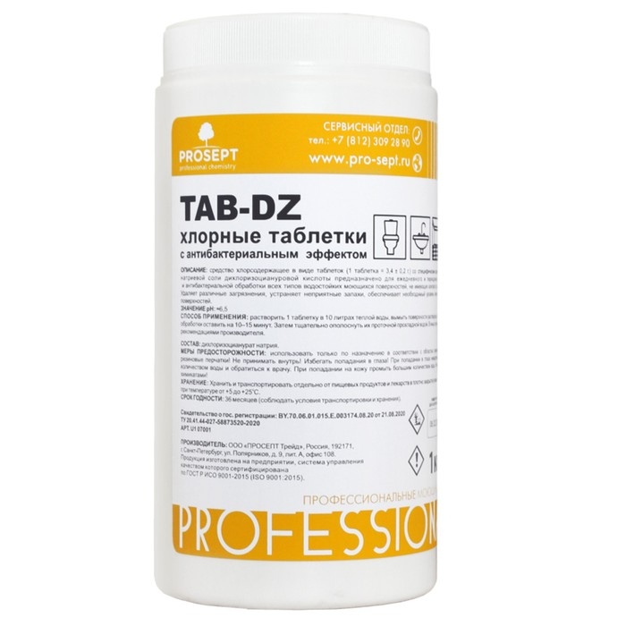 Хлорные таблетки с антибактериальным эффектом TAB-DZ, 1 кг
