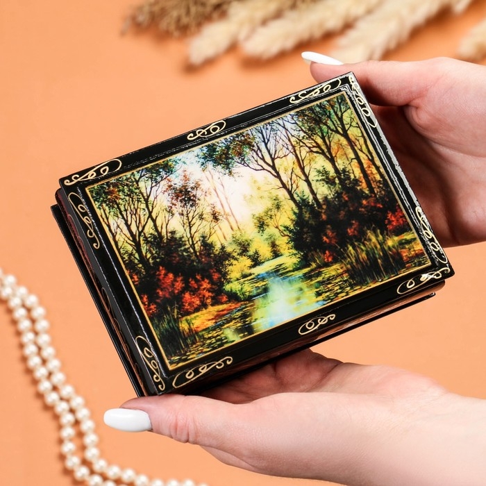 Шкатулка «Мишки в лесу», 10×14 см, лаковая миниатюра