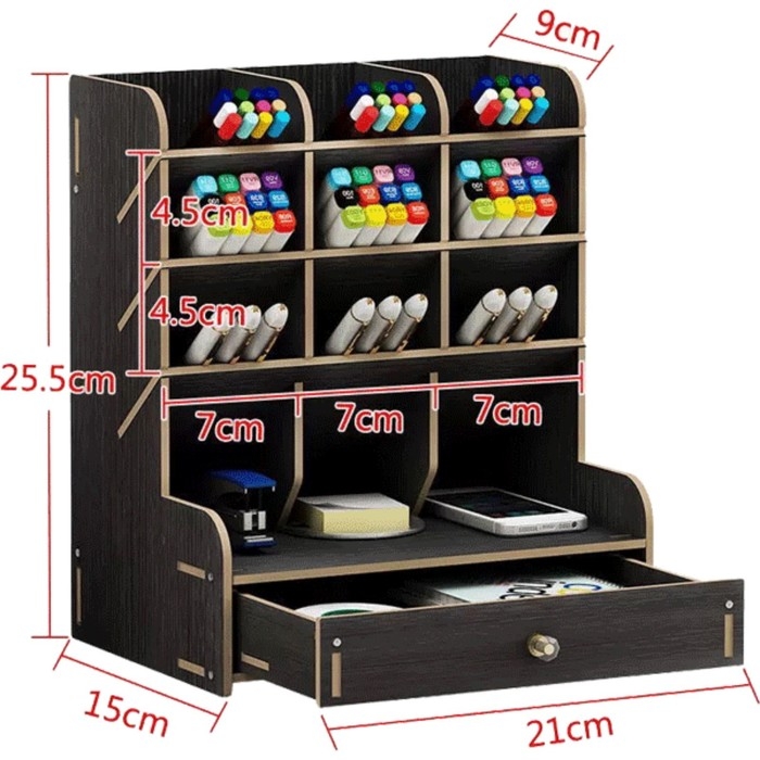 Органайзер для канцелярских принадлежностей deVENTE. Academy настольный, 21 x 15 x 25,5 см, материал - МДФ, цвет черный, без наполнения, в картонной коробке