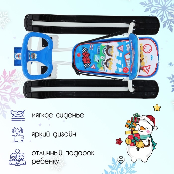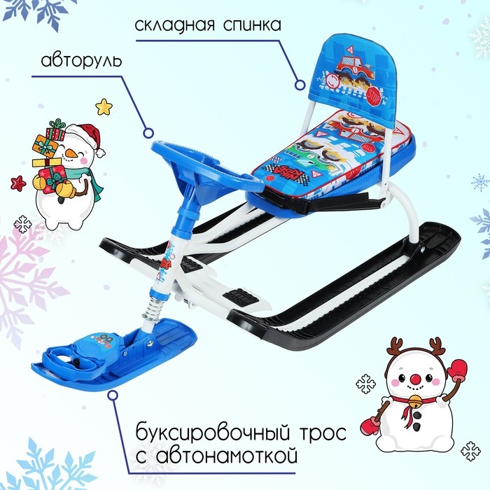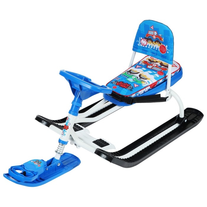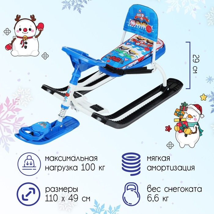 Снегокат «Тимка спорт 4-1», ТС4-1/БГ, со спинкой и ремнём безопасности, цвет белый/голубой