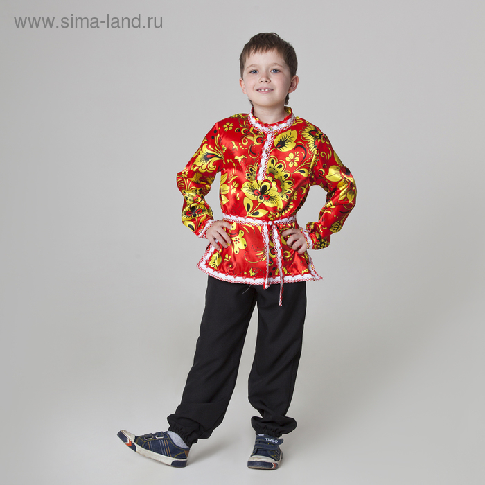 Карнавальная русская рубаха «Хохлома», атлас, р. 34, рост 134 см, цвет красный