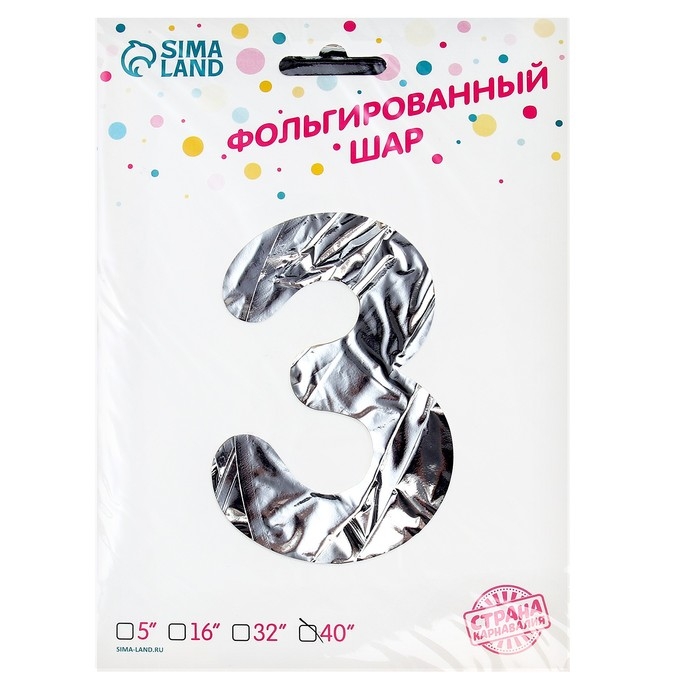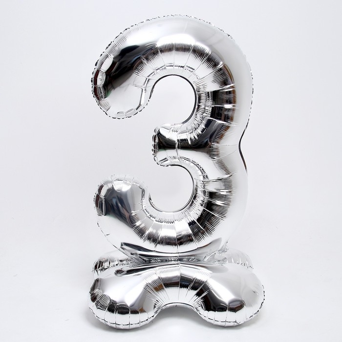 Шар фольгированный 50" «Цифра 3», на подставке, серебро