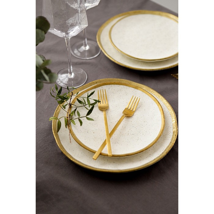 Посуда серии Magistro Poursephona — это современная фарфоровая посуда. В оформлении серии превалируют два цвета – бежевый оттенок фарфора и роскошное золото в виде широкой окантовки предметов. Идеально подходит как для формального обеда, так и для торжеств по особым случаям. Лаконичные формы, золотая окантовка, разноцветные вкрапления придают изделиям из фарфора одновременно необычный и современный вид.
