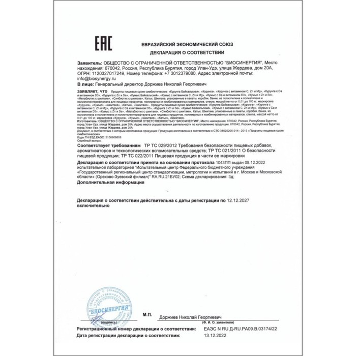 Биологически активная симбиотическая микрофлора, пептиды и олигопептиды (фракции гидролизата казеина – белка молока), полученные в результате ферментативного воздействия на казеин симбиоза бифидобактерий, лактобацилл, уксуснокислых и молочнокислых стрептококков, пропионовых бактерий, лактострептококков, молочных дрожжей и др. (патент на изобретение способа приготовления пептидосодержащего продукта Курунга № 2524437). Продукт содержит ферменты, аминокислоты (в т.ч. - незаменимые), нутриенты.