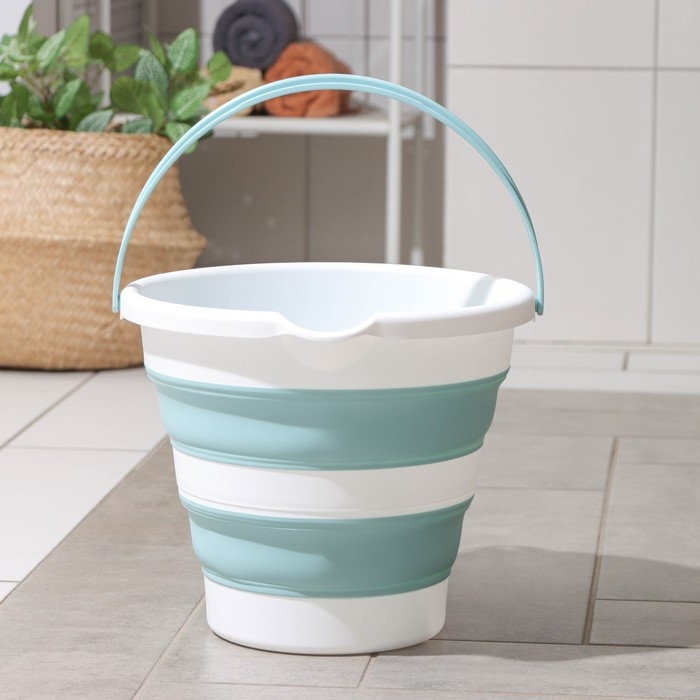 Ведро складное «Флекс», 10 л, 32×34×26 см, цвет морская волна