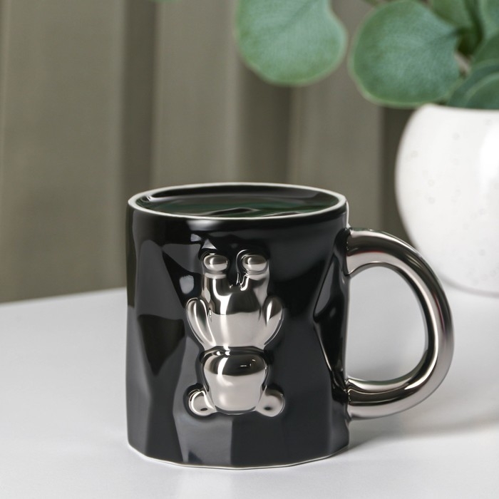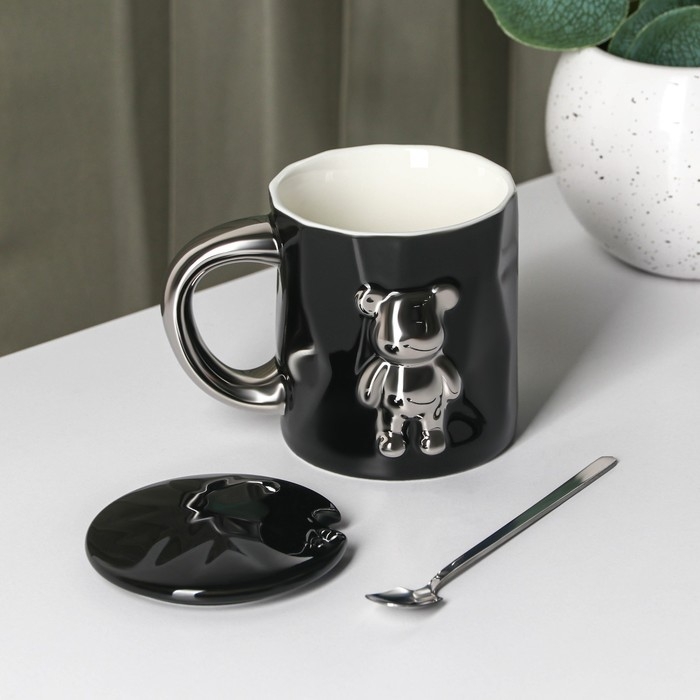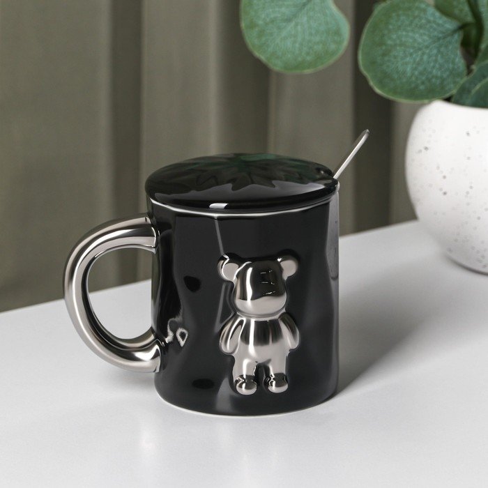 Кружка керамическая с ложкой «Стильный мишка», 320 мл, цвет чёрный
