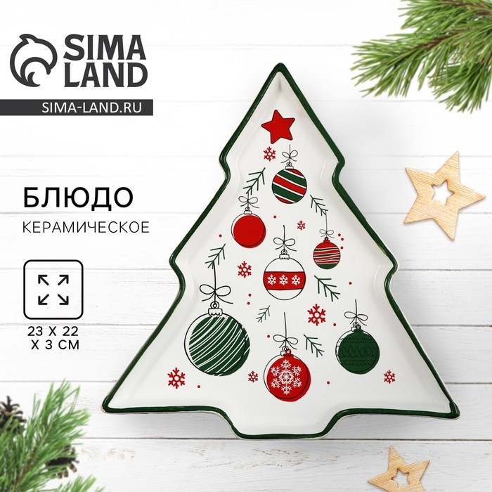 Новый год! Блюдо новогоднее керамическое «Ёлочные игрушки», 23х22х2 см, цвет белый