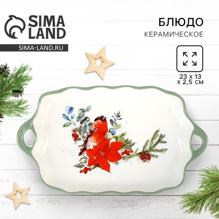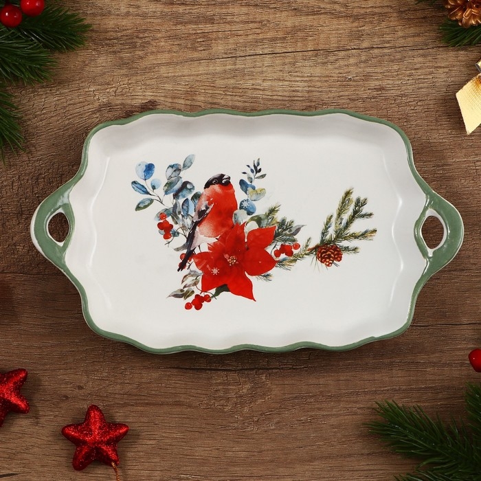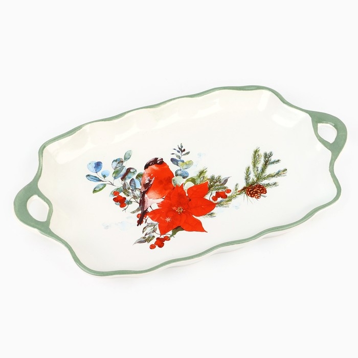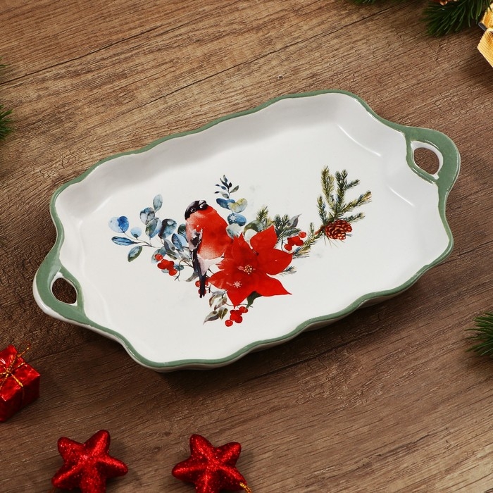 Новый год! Блюдо новогоднее керамическое «Снегирь», 23х13х2.5 см, цвет белый