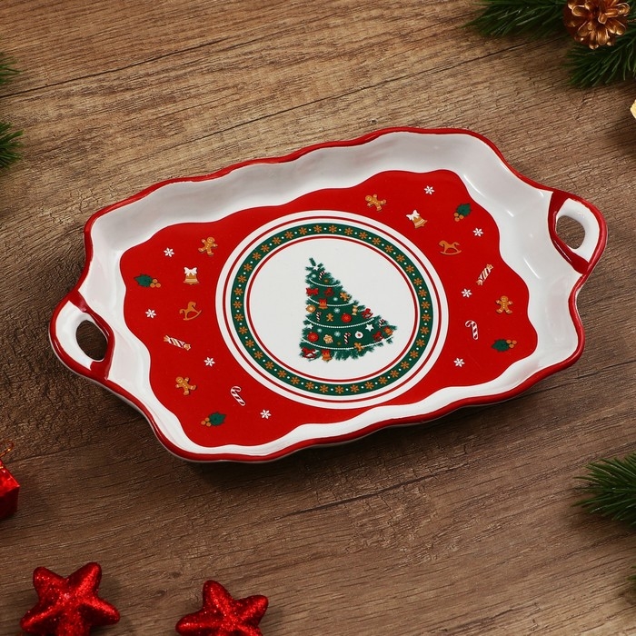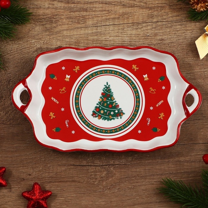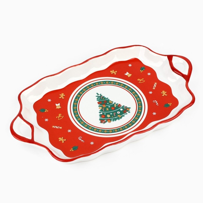 Новый год! Блюдо новогоднее керамическое «Пряничные человечки», 23х13х2.5 см, цвет белый