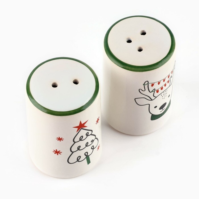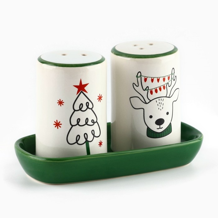 Новый год! Набор для специй керамический «Новогодний олень», 12х6.5х7 см, цвет белый