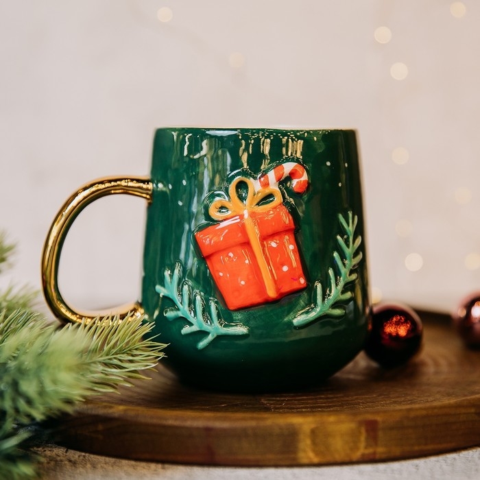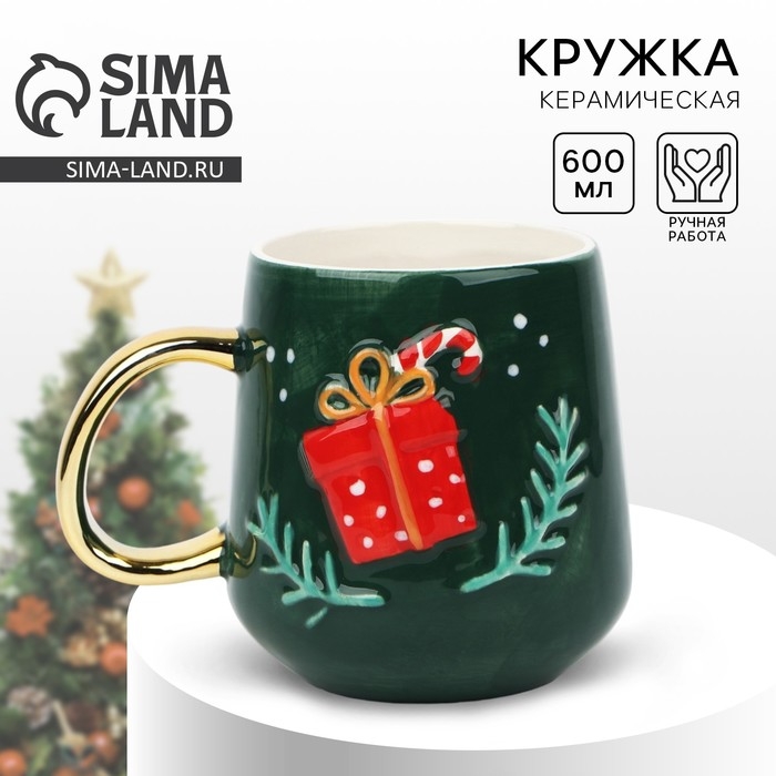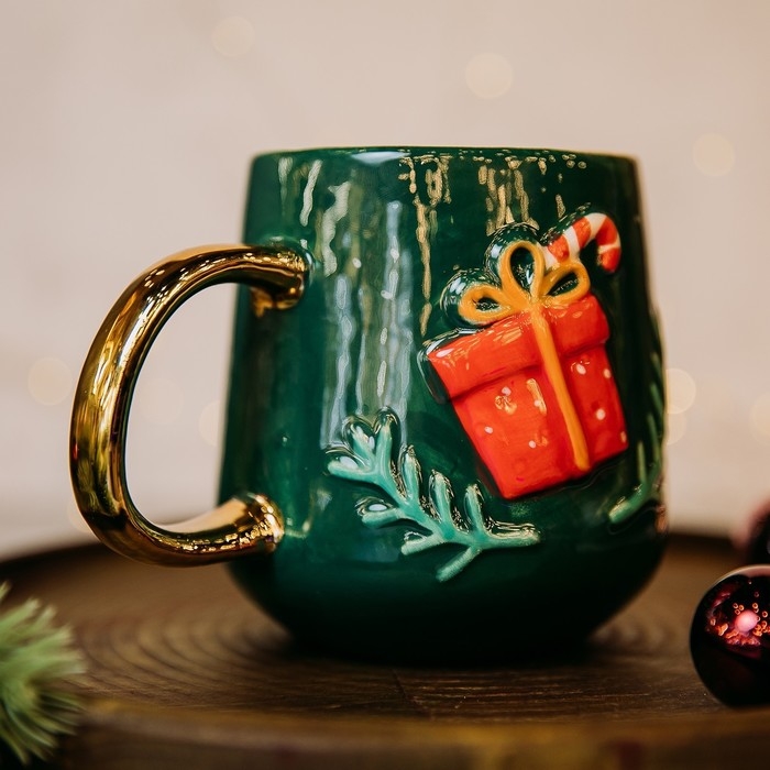Новый год! Кружка новогодняя керамическая «Подарок», 600 мл, цвет зелёный