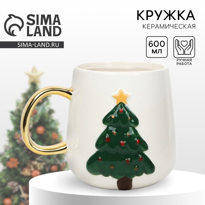 Новый год! Кружка новогодняя керамическая «Ёлочка», 600 мл, цвет белый