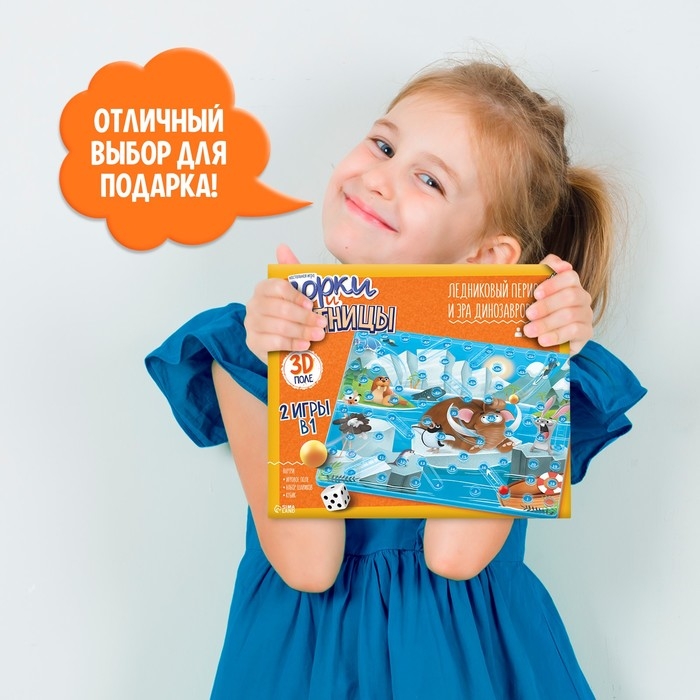 «Горки и лестницы. Ледниковая эра и диномир!» — это отличная игра для 2–4 игроков. Она станет прекрасным подарком для ребёнка и подарит ему много веселья и полезный досуг.