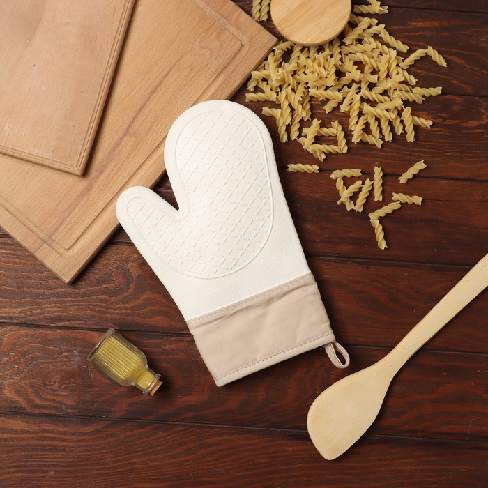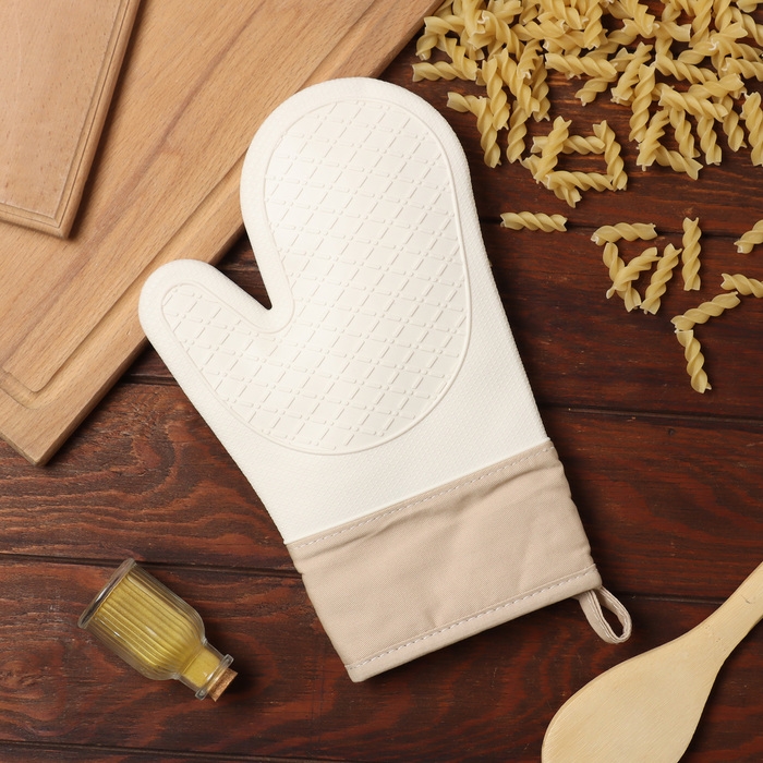 Варежка Доляна, цв.молочный, 18х33 см, 100% п/э, силикон