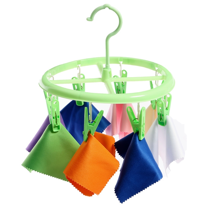 - Тренируем счёт: положите карточку перед ребёнком. Попросите малыша посчитать предметы на карточке и развесить на прищепках столько же платочков.